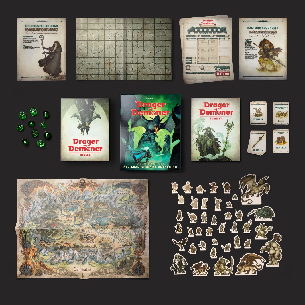 Drager og Demoner, Skandinavias største rollespill gjennom tidene, er endelig tilbake i norsk språkdrakt. Denne nye utgaven av det klassiske rollespillet er både en hyllest til spillets arv og en videreutvikling, tilpasset til nåtidens rollespillere. Du kan spille det ved kjøkkenbordet eller online, uten omfattende forberedelser – det er bare å åpne boksen og sette i gang!